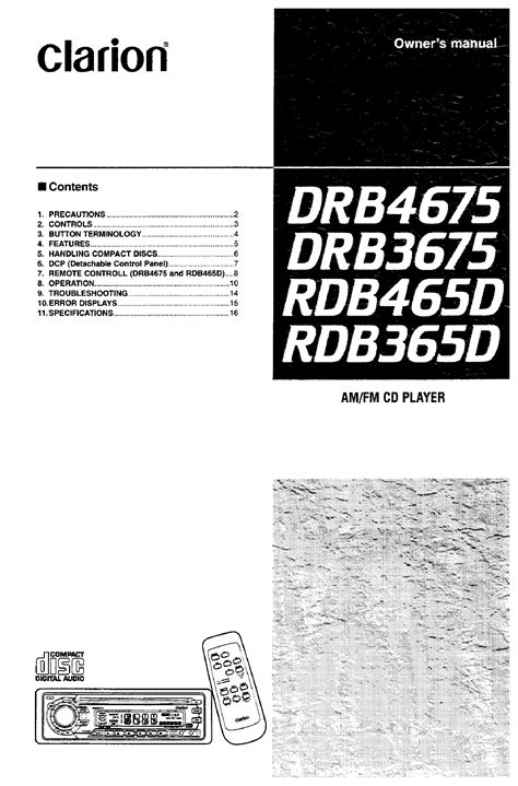 Download CLARION RDB365D USER MANUAL Paperback